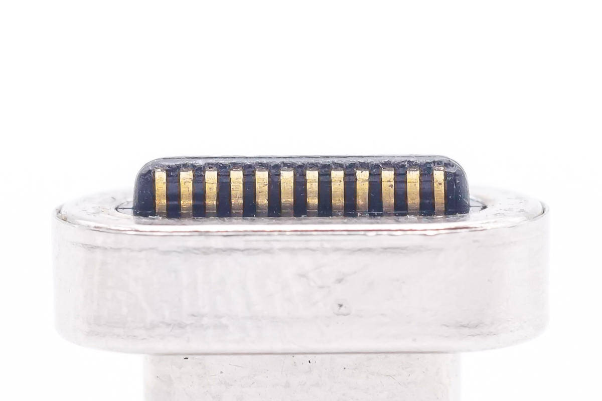 Các chi tiết bên trong của đầu nam USB-C được thiết kế cho các chân đầy đủ.