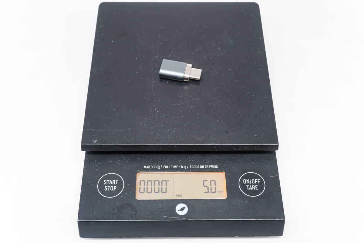 Trọng lượng của đầu thẳng khoảng 5g. Nếu lỗi được tính, có thể thấy rằng trọng lượng của hai bộ điều hợp là như nhau.