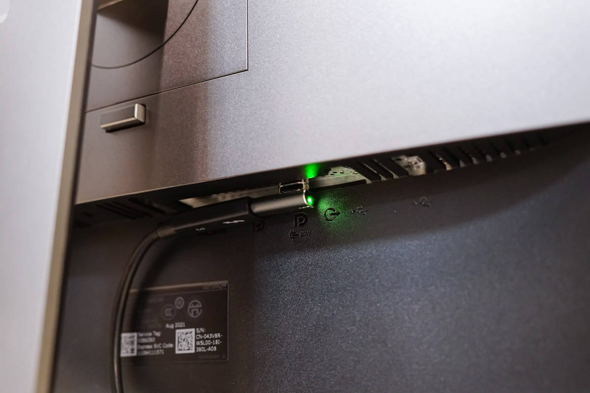 Tiếp theo, chúng ta hãy xem quá trình truyền video, kết nối cáp dữ liệu Thunderbolt 3 với màn hình Dell U2720QM 4K thông qua bộ chuyển đổi.